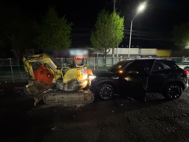 경찰에 따르면 A씨는 지난 13일 밤 11시 31분 부산 사상구 낙동대로에서 주행 중 음주운전 의심차량 신고를 받고 출동한 경찰의 하차 요구에 불응했다. 이어 약 2.6㎞의 거리를 도주, 한 공사 현장에 설치된 플라스틱 방호벽과 주차된 굴삭기를 잇달아 들이받은 뒤에야 멈췄다.