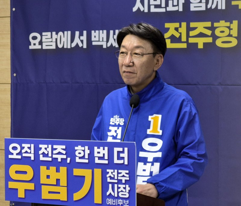 우 후보는 이날 전주시청에서 기자회견을 열고 '전주형 온(溫) 생애 맞춤 복지 5대 공약'을 발표했다.