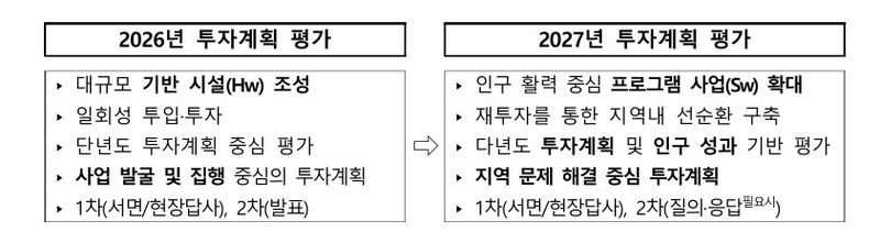 정부는 앞으로 평가의 중심을 '무엇을 지었는가'에서 '지역 문제를 얼마나 해결했는가'로 옮기기로 했다. 일자리, 주거, 돌봄, 의료 서비스 등 추진 과제의 실효성과 주민 체감 성과를 중점적으로 보겠다는 것이다.