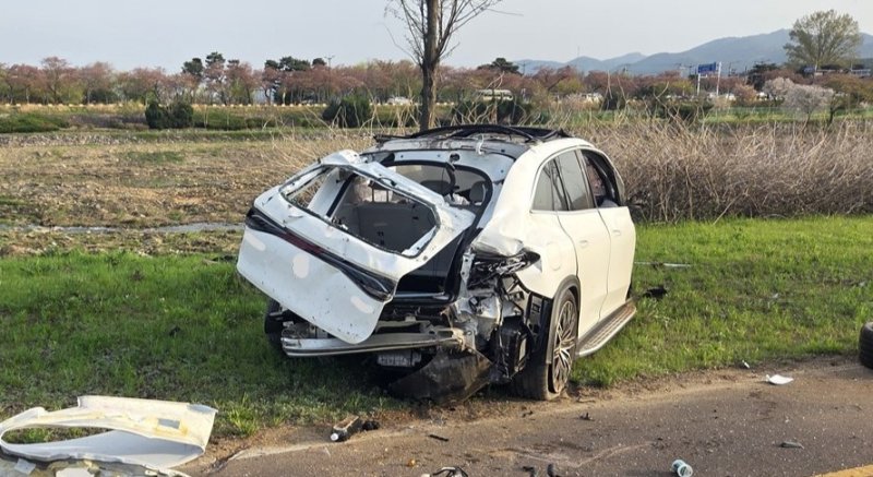 14일 경주경찰서에 따르면 지난 11일 오후 5시24분쯤 경주시 동천동에서 승용차가 가드레일을 들이받은 뒤 5m 아래 하천 둔치의 자전거도로로 추락했다.