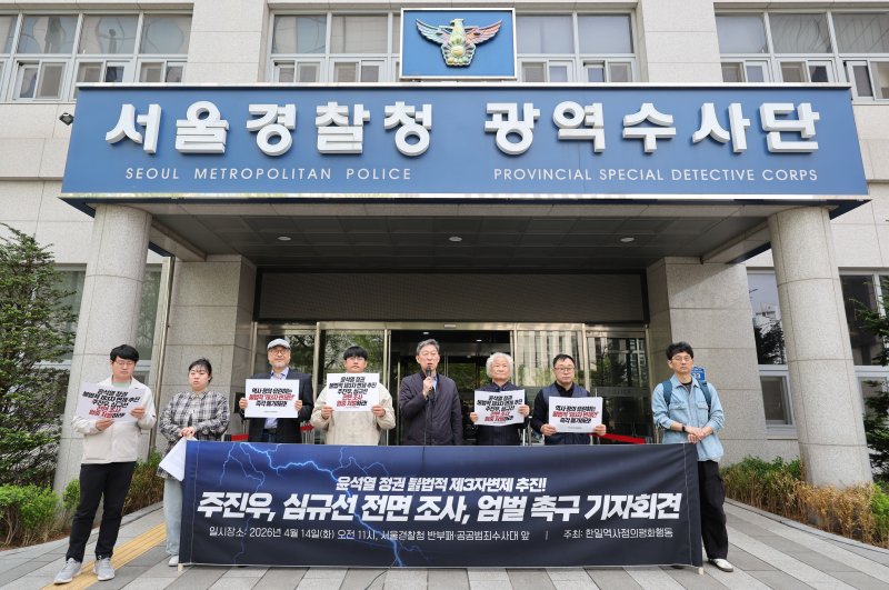 한편 이날 오전 시민단체 한일역사정의평화행동은 서울경찰청 마포청사 앞에서 기자회견을 열고 관련자들에 대한 철저한 수사와 처벌을 촉구했다. 강제동원 피해자 고(故) 이춘식씨의 장남 이창환씨는 "부친은 제3자 변제를 수용하지 않았는데도 의사 표현이 어려운 상황을 틈타 서명이 위조됐다"고 주장했다.
