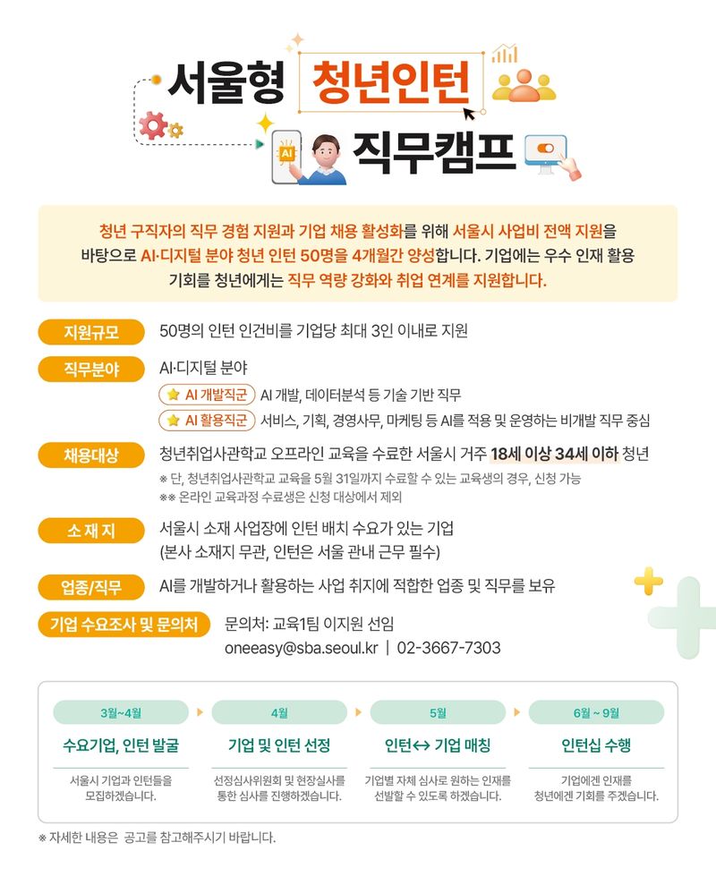 이번 사업은 서울시 전액 지원으로 추진되며 청년 50명이 4개월간 인턴으로 근무하며 실무 역량을 쌓을 수 있도록 설계됐다.