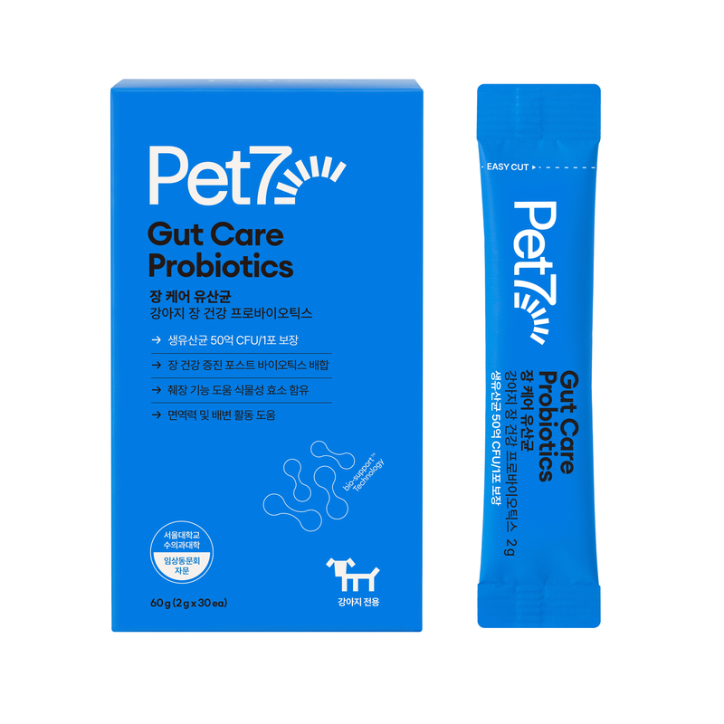 '펫세븐 장 케어 유산균'은 반려견의 장과 췌장 건강, 면역 밸런스를 종합적으로 고려해 설계한 반려견 전용 영양제다. 반려견의 소장과 대장 환경에 맞춰 엄선한 유산균을 1포당 50억 CFU 보장 균수로 담았으며, 장 내 생존율과 정착률을 높일 수 있도록 특수 코팅 기술을 적용하고 프리바이오틱스와 프로바이오틱스를 배합했다.