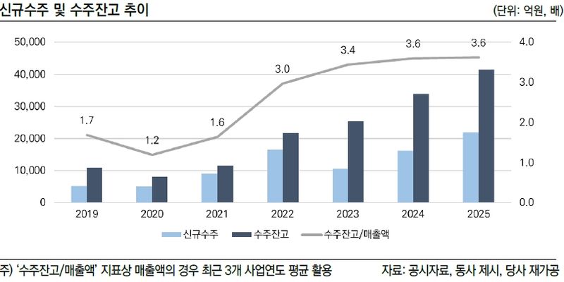 조선업에 소폭 후행하는 엔진업 특성상 한화엔진의 수주잔고도 2021년 이후 빠르게 확충됐다. 2025년 말 기준 수주잔고는 약 4조1000억원으로 매출액의 3배를 상회한다. 2026년 들어서도 양호한 신규수주가 이어지고 있다.