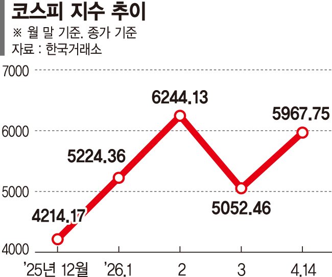 이날 코스피는 장중 한 때 3.75% 오른 6026.52까지 거래되며 지난달 3일 이후 한 달 반만에 6000선을 회복했다. 삼성전자와 SK하이닉스를 중심으로 한 메모리 반도체 업황 회복이 코스피 이익 급증을 견인하고 있다. 또 반도체 이외 업종의 2026년 영업이익도 전년 대비 37% 증가할 것으로 예상되며 방산, 조선, 기계, 에너지, 로봇 등으로 실적 개선이 확산되는 모습이다.