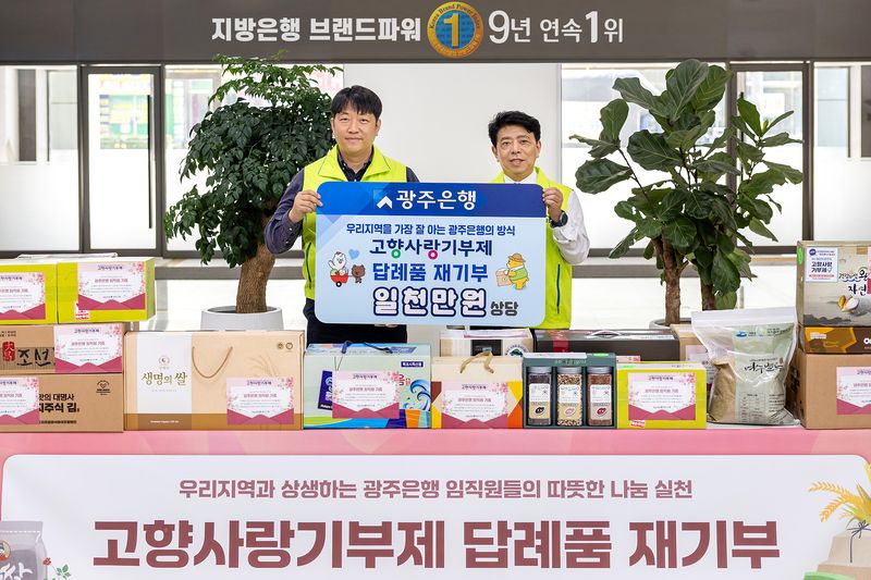 이어 고향사랑기부제를 통해 제공받은 약 1000만원 상당의 답례품을 광주·전남지역 사회복지시설에 다시 기부해 지역과 함께 상생하고 나눔의 가치를 실천하는 지역 대표 은행으로서의 역할을 다시 한번 되새기는 계기를 마련했다.