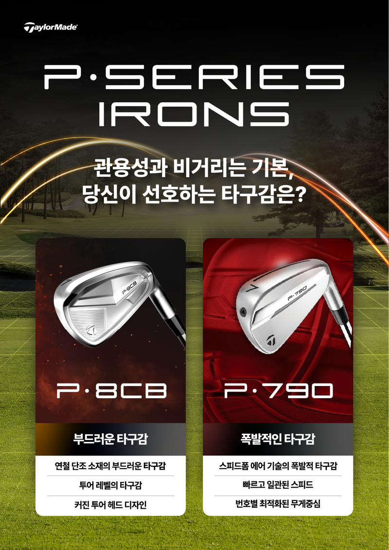 정교한 컨트롤과 부드러운 타구감을 중시하는 로우 핸디캡퍼들을 위해서는 P·8CB 아이언이 구원투수로 나섰다. 1025 연철을 기반으로 한 초고밀도 단조 공정을 거쳐 탄생한 이 모델은, 단조 아이언 특유의 순수한 피드백에 현대적인 관용성을 절묘하게 덧입혔다. 투어 선수들이 요구하는 예리한 샷 메이킹 능력을 유지하면서도, 미스 샷 상황에서의 안정감을 극대화한 설계는 테일러메이드가 왜 '퍼포먼스 브랜드'인가를 다시금 증명한다.