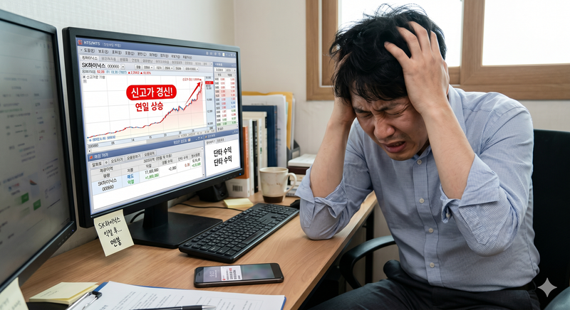 틀린 건 없었다. 전쟁 리스크는 실재했고, 협상 결렬도 사실이었다. 다만 시장은 A씨가 생각한 것보다 더 빠르게 흘러갔다. 곧 있을 실적 발표에 대한 기대감이나 ADR 발행을 통한 미국 상장 기대감 등 여러 가지 요소들이 SK하이닉스를 있는 힘껏 밀어 올리는 중이라는 사실을 A씨는 몰랐다. "신고가는 더 오를 이유가 있기 때문에 신고가다." 자주 들리는 주식 커뮤니티에서 떠돌던 그 말이 오늘따라 A씨 마음에 아프게 박혔다.