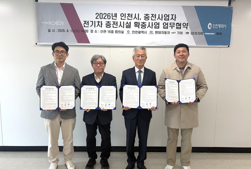 인천시는 현대자동차, 기아, GS차지비, 채비 등 주요 충전사업자와 전기차 충전시설 확충을 위한 민관 협약을 체결했다고 15일 밝혔다.