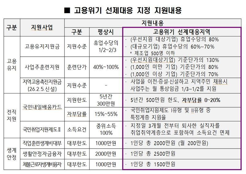 제도적 지원도 강화된다. 기업에는 고용유지지원금이 최대 80%까지 확대되고, 근로자는 직업훈련 지원과 생계비 대부 한도 상향 등의 혜택을 받게 된다.