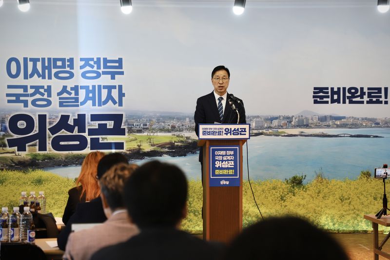 위성곤 후보는 이날 기자회견을 열고 "지금 제주의 민생과 경제가 가쁜 숨을 몰아쉬는 위기의 순간에 놓여 있다"며 "제주의 위태로운 경제를 떠받치고 도민의 고단한 삶을 지탱하는 도구가 되겠다"고 밝혔다.