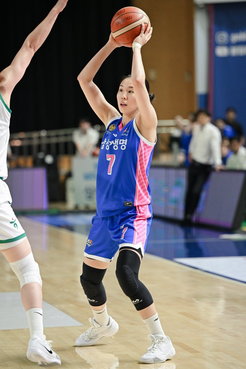 강유림이 3점포 4방을 포함해 20점을 몰아쳐 삼성생명 승리를 견인했다. 개인 통산 PO 한 경기 최다 득점 기록이다.