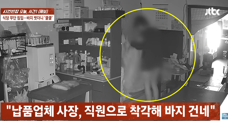 당시 문 잠금 장치는 파손된 상태였던 것으로 전해졌다. 납품업체 관계자는 평소처럼 비밀번호를 입력하려 했지만 문이 열려 있어 그대로 들어왔고, 남성을 직원으로 착각해 "바지를 입으라"며 건네주기도 했다고 한다.