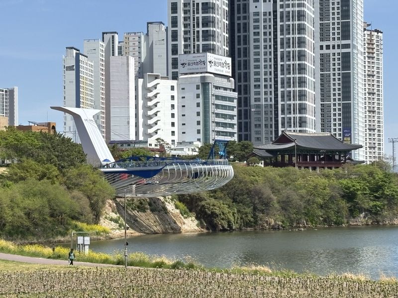 16일 울산 정치계에 따르면 태화강 스카이워크가 경관 논란을 일으킨 것은 지난 2023년으로 거슬러 올라간다. 한 시민단체가 주변 건물과 부조화를 이유로 사업 철회를 요구하면서 시작됐다. 고래 형상의 디자인과 위치가 문제로 지적됐다.