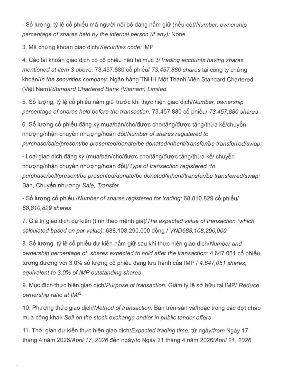 16일 현지 언론에 따르면 호찌민증권거래소(HOSE)는 지난 13일 SK인베스트먼트 비나 III를 포함한 이멕스팜의 대주주인 3개 투자 펀드가 보유 주식 매각을 등록했다고 밝혔다.