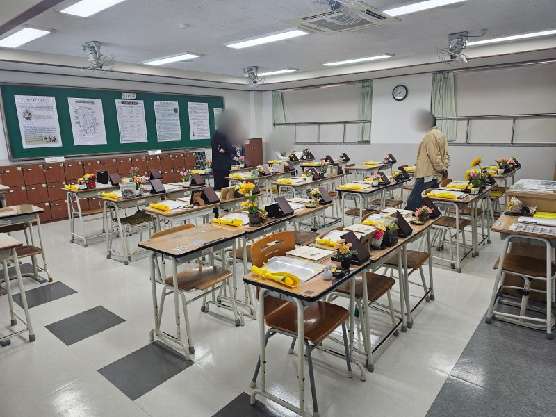 교실에는 학생들이 유일하게 기다리는 급식시간 식단표도 있고 과목표, 달력, 청소당번 일정, 한 해 생일자 목록 등 여전히 남아 있어 가슴을 뭉클하게 했다.