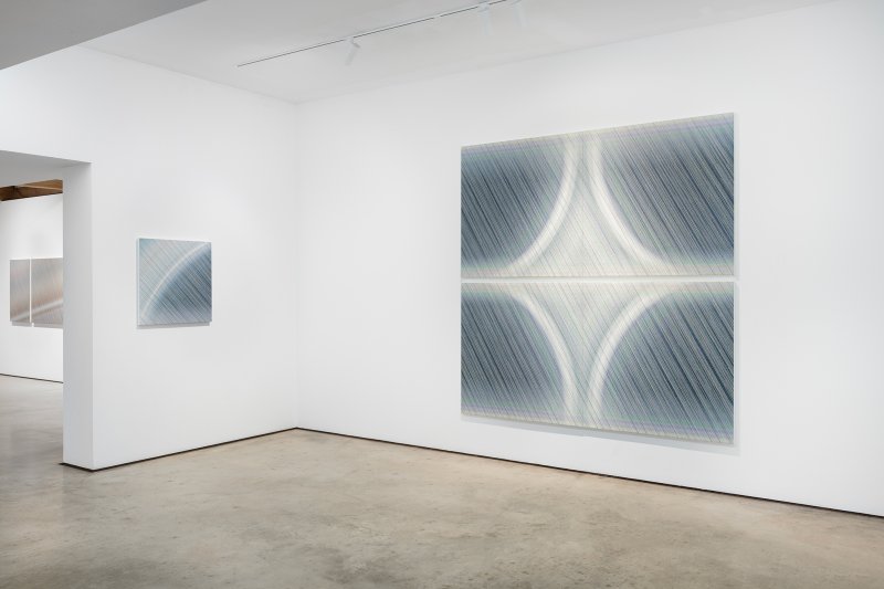 전시의 핵심 개념은 '시간성'이다. 지 작가는 선 긋기라는 수행적 행위 속에 내재된 비선형적 시간 구조를 드러낸다. 시작과 끝이 명확히 구분되지 않는 과정 속에서 서로 다른 시간들이 한 화면에 중첩돼 공존한다. 이는 과거와 현재, 미래가 단일한 흐름이 아닌 복합적인 층위로 얽혀 있는 '아나크로니즘적' 감각을 형성한다.