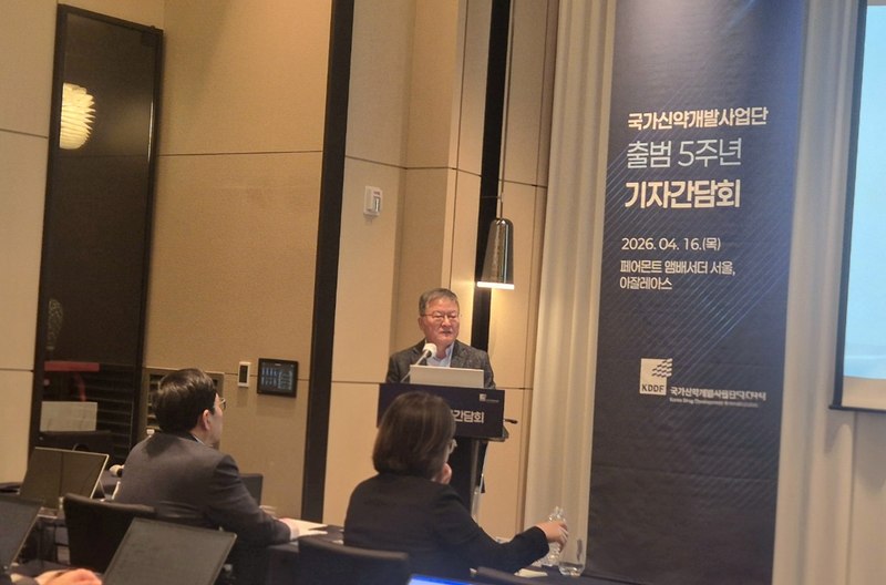 [파이낸셜뉴스] 국가신약개발사업단(KDDF)이 출범 5주년을 맞아 그간의 성과를 돌아보고, 올해부터 본격화되는 2단계 사업의 추진 방향을 공개했다. 박영민 KDDF 단장은 16일 서울 여의도 페어몬트 앰배서더 서울에서 열린 기자간담회에서 최근 신약 개발을 바라보는 패러다임의 변화를 강조하면서 "한국의 신약개발은 막연하게 길고 힘든 마라톤 구간을 넘어 허들 경기에 진입하고 있다"고 말했다.