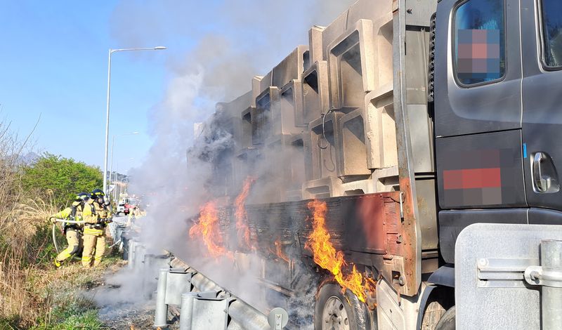 이 불로 23톤 화물차가 불에 탔다. 인명 피해는 없는 것으로 확인됐다.