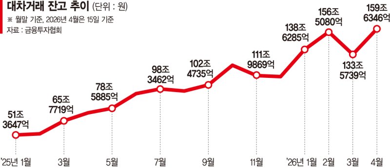 16일 금융투자협회에 따르면 전날 기준 대차거래 잔고는 159조6346억원으로 사상 최대치를 기록했다. 이달 들어서만 26조607억원 증가한 규모다.