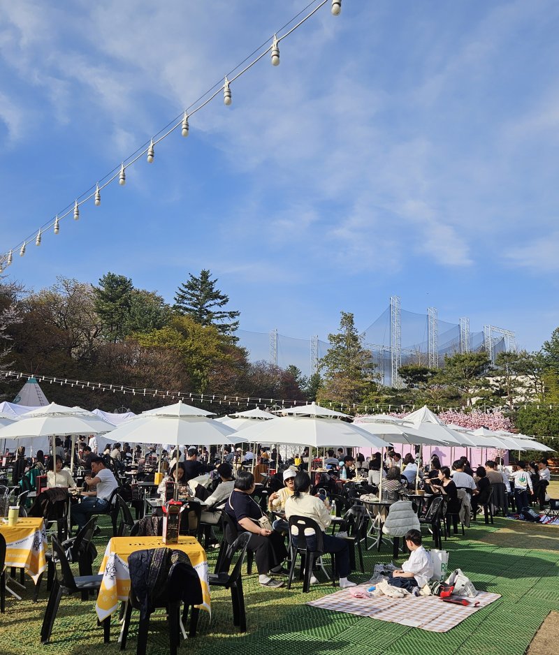 이번 행사는 이달 11일부터 다음 달 3일까지 매주 주말, 총 8회에 걸쳐 '포레스트 파크'에서 진행되는 '와인 페어-구름 위의 산책'의 일환으로, 1부(11시~15시)와 2부(15시30분~20시)로 나뉘어 운영된다. 피자힐 삼거리 일대 도로변과 야외 공간을 활용한 기존 행사와 달리, 올해는 벚나무로 둘러싸인 잔디 공간으로 무대를 옮기며 몰입도를 높인 것이 특징이다.
