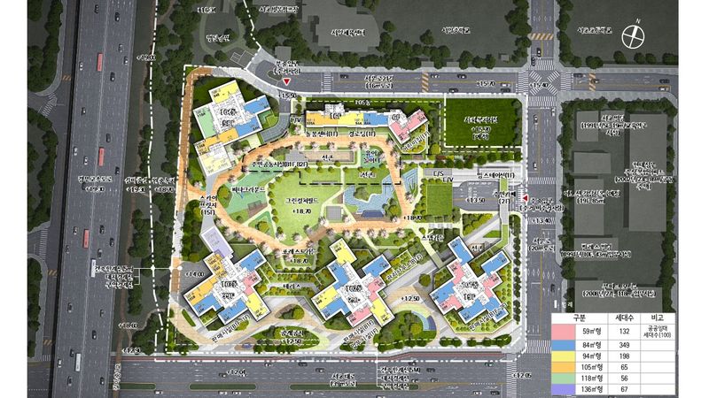 아울러 향후 경부고속도로 지하화 사업 시 유연하게 공간을 활용할 수 있도록 도로변 숲길(길마중길)과 연결되는 단지 내외부 보행동선을 계획해 단지 중앙녹지로 이어지는 휴식공간을 확대하고 도심 속 친환경 주거 환경을 제공할 예정이다.