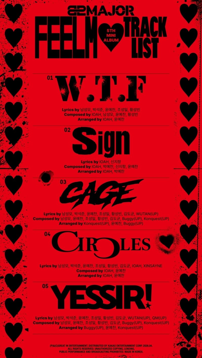 82메이저(남성모, 박석준, 윤예찬, 조성일, 황성빈, 김도균)는 지난 16일 공식 채널을 통해 미니 5집 '필름'(FEELM)의 트랙리스트 이미지를 게재했다.