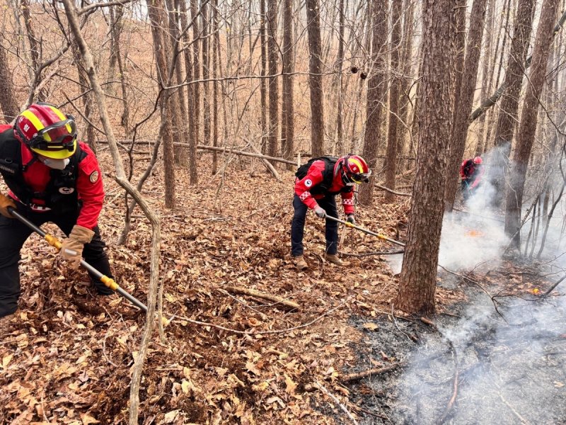 소방·산림 당국과 지자체는 헬기 6대를 비롯해 인력 94명과 장비 25대를 투입, 진화에 나선 끝에 주불 진화를 마쳤다.
