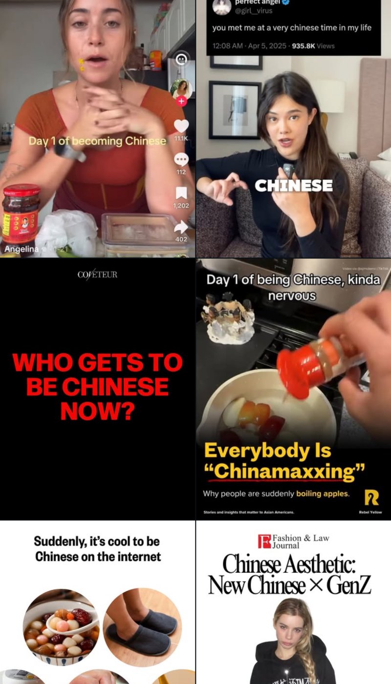 [서울=뉴시스]김혜경 기자, 이지은 인턴기자 = 최근 소셜미디어에서 '중국인 되기' 밈이 확산하며 화제를 모으고 있다. 이른바 '차이나맥싱(Chinamaxxing)'으로 불리는 이 트렌드를 두고, 전문가들은 중국 문화의 글로벌 영향력이 커지고 있다고 분석한다.