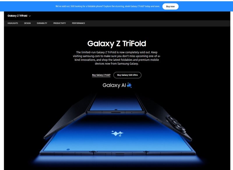 삼성전자 관계자는 "미국이 갤럭시Z 트라이폴드 물량이 남아있던 마지막 지역이었다"며 "여기 물량이 소진되면 더는 판매가 되지 않을 것"이라고 말했다.