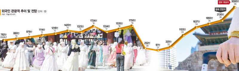 3000만명. 정부가 관광 분야에서 내건 목표치다. 지난 2월 이재명 대통령 주재로 열린 제11차 국가관광전략회의에서 정부는 오는 2029년까지 외국인 관광객 3000만명을 유치하겠다고 선언했다. 이는 기존 2030년에서 목표 달성 시점을 1년 앞당긴 것이다. K팝·K뷰티·K푸드 등 이른바 K컬처의 폭발력을 확인한 데다, 관광을 단순한 서비스업이 아닌 '국가 전략 산업'으로 격상시키겠다는 의지가 맞물린 결과다.