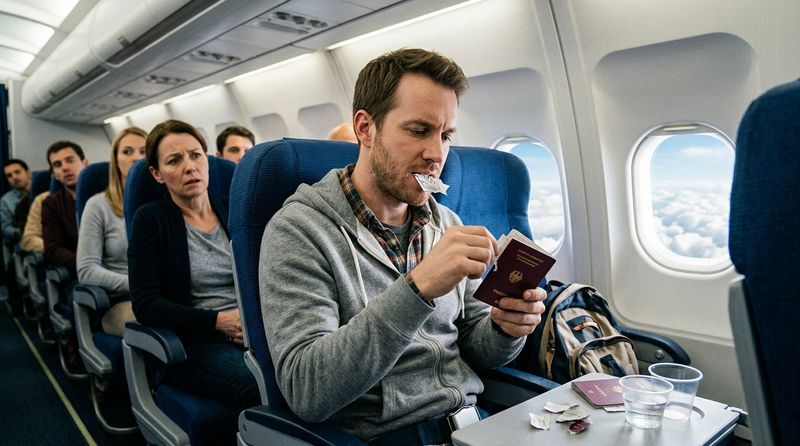 이륙한 지 20분 후 좌석벨트 표시등이 꺼지자 한 승객은 자신의 여권 페이지를 뜯어 먹기 시작했다. 해당 장면이 담긴 모습을 본 주변 승객들은 큰 충격을 받았으며, 기내는 순식간에 혼란에 휩싸였다.