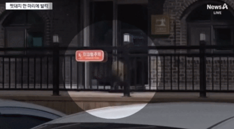 이후 주변을 두리번거리던 멧돼지는 인근 가게의 유리문을 들이받더니 여자 화장실 출입문 쪽으로 달려들며 안으로 들어가려고 했다.