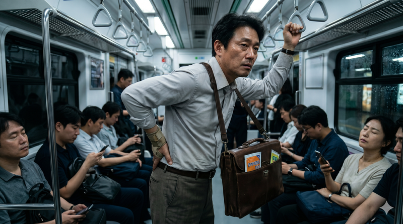 휴식을 반납하고 '좋은 아빠'의 가면을 쓰느라 방전된 주말. 월요일 아침, 욱신거리는 허리를 부여잡고 출근길에 오르는 4050 가장들의 눈물겨운 '자아 고갈'의 기록.