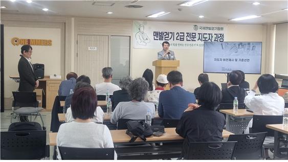 이날 국제맨발걷기협회 글로벌 이사장으로 참석한 박 회장은 2급 지도자 전문과정 수강생 30명에게 맨발걷기 지도자의 비전 제시와 기준 선언에 관한 맨발걷기에 대해 특별강의를 했다.
