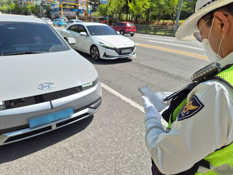 21일 오후 1시께 울산 북구 화봉휴먼시아 앞 사거리. 우회전 통행 방법 위반 차량에 대한 집중 단속이 시작되자마자, 진행하던 방향의 신호가 빨간불인데도 멈추지 않고 우회전한 승용차가 경찰의 경광봉에 가로막혔다.