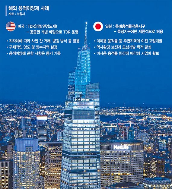 용적이양제는 문화재 보존 등 여러 이유로 활용하지 못하는 용적률을 개발 여력이 있는 곳으로 넘겨줘 도시 전반의 개발밀도를 효율적으로 관리할 수 있는 방안이다. 이미 선진국에서는 개발권양도제(TDR) 등 용적이양제와 유사한 제도를 운영하고 있다.
