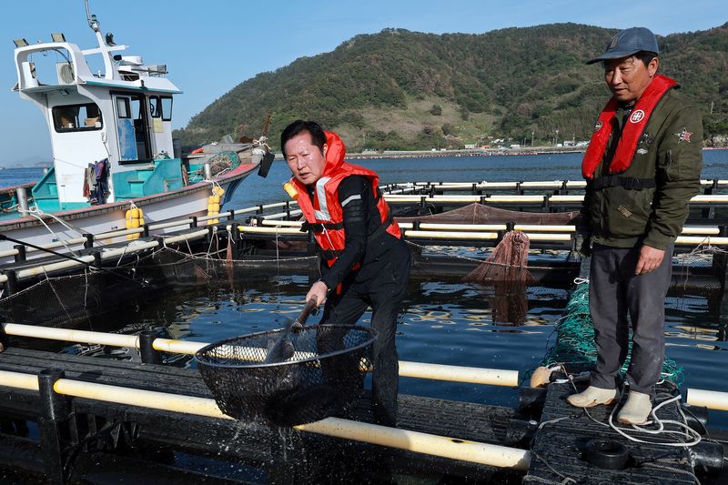 정 대표는 뒤이어 욕지도의 양식장을 방문해 일손을 돕고 이들의 고충도 들었다.