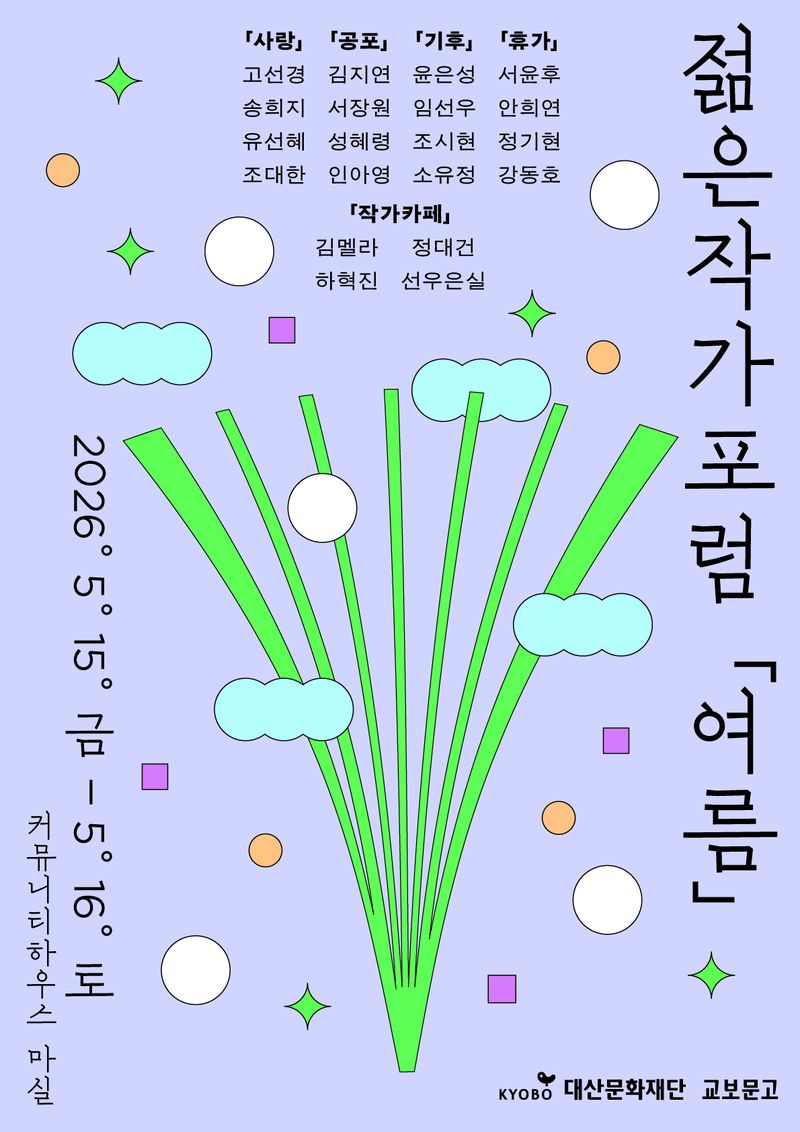 대산문화재단과 교보문고는 오는 5월 15일부터 이틀간 서울 '커뮤니티하우스 마실'에서 '2026 젊은작가포럼'을 개최한다고 22일 밝혔다.