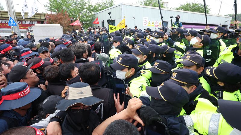 경찰청은 22일 언론 공지를 통해 "'화물연대 스타렉스 차량이 정문으로 돌진해 경찰을 밟고 지나갔다'는 글과 영상이 커뮤니티 등을 통해 확산되고 있다"며 "확인 결과 해당 영상은 지난 20일 발생한 상황으로 경찰을 밟고 지나간 바 없다"고 밝혔다.