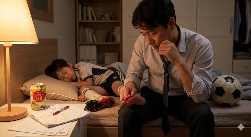 하나라도 더 가르쳐야 한다는 책임감은 새 축구화에 쓸려 붉어진 아이의 발가락과, 지우개질로 너덜너덜해진 문제집의 흔적을 밤이 되어서야 마주한 순간 뼈아픈 후회로 밀려온다.