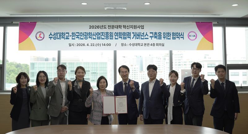【파이낸셜뉴스 대구=김장욱 기자】수성대가 한국안광학산업진흥원과 손을 맞잡고, 안광학 산업 경쟁력 제고에 힘을 모으기로 했다.