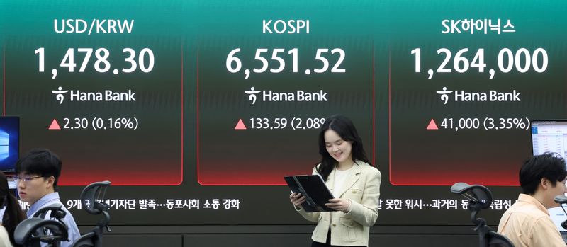 (서울=뉴스1) 손엄지 기자 = 코스피가 장중 6500선을 돌파하며 사상 최고치 경신 기대를 키웠지만, 오후 들어 SK하이닉스가 하락 전환하고 국제유가 급등에 따른 경계 심리가 확산되면서 약세로 돌아섰다. 반도체 호실적과 실적 시즌 기대감이 지수 상단을 밀어 올렸지만 차익 실현 매물과 지정학 변수에 흔들리는 모습이다.
