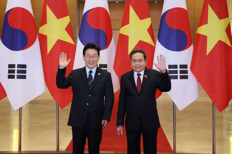 앞서 이 대통령은 이날 하노이 총리실에서 흥 총리와 만나 "과거에 한국은 원전을 통한 에너지 자립, 고속도로 및 철도를 통한 물류혁신, 그리고 투명한 금융 결제 시스템이라는 세 가지 핵심 인프라에 집중 투자했다"면서 "이러한 물리적.제도적 토대의 결합이야말로 한국이 단기간에 경제 도약을 이뤄낸 결정적 엔진이었다"고 말했다.