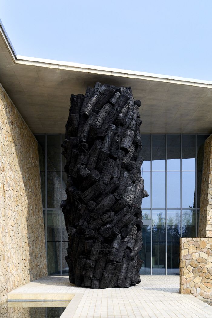 뮤지엄 본관에는 지난 2023년 미국 뉴욕 록펠러센터에서 선보인 작업의 확장된 형태로 높이 8m, 폭 5m, 무게 7t에 달하는 '불로부터(Issu du feu)'가 눈길을 끈다. 숯은 전통적으로 정화와 치유를 상징하며, 관람의 처음과 끝을 관통하는 자연의 순환을 의미한다.