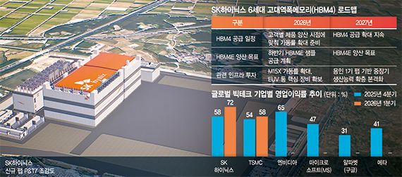 생산능력 확충을 기반으로 현재 주류 제품인 HBM3E(5세대)에 이은 HBM4 경쟁 대응도 본격화한다. 삼성전자, 미국 마이크론 등 주요 메모리사와 HBM4 주도권 경쟁이 격화하는 가운데 SK하이닉스도 공급 확대 계획을 제시했다. 김 부사장은 "HBM4는 주요 고객사와 초기 단계부터 긴밀하게 협력해 선제적으로 개발 및 공급 체계를 구축해 왔다"며 "고객 요구 성능을 만족하는 제품을 고객별 양산 시점에 맞춰 램프업해 적시에 공급할 수 있도록 준비하고 있다"고 말했다.