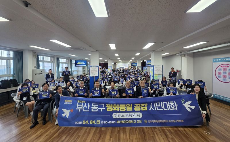 [파이낸셜뉴스] 평화통일에 대한 시민 공감대를 확산하기 위한 부산 동구 '평화통일 공감 시민대화'가 지난 24일 부산동여자중학교 강당에서 개최됐다.