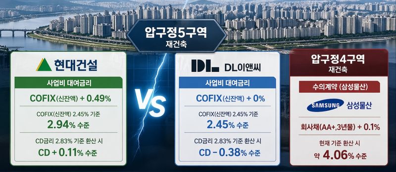 결국 압구정 일대 재건축 시장은 동일 권역 내에서도 '경쟁입찰에 따른 금리 인하 경쟁'과 '수의계약에 따른 비경쟁 구조'가 뚜렷하게 엇갈리는 양상을 보이고 있다