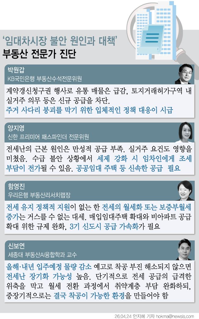 신보연 교수는 "단기적으로는 전세대출과 보증 제도를 실수요자 중심으로 정교하게 보완하고 월세 전환 과정에서 취약계층 부담을 완화해야 하며, 중장기적으로는 정비사업의 금융·행정적 병목을 풀어 실제 착공이 가능한 환경을 만드는 것이 중요하다"고 했다.