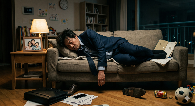 영혼까지 탕진한 하루, 지친 어깨로 지켜낸 가족의 평온한 숨소리